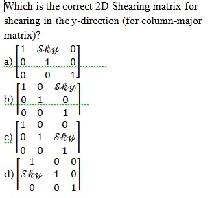 Which is the correct 2D Shearing matrix for shearing in the y-direction (for column-major matrix)?