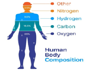 Explanation:The human body is approximately 99% comprised of just six elements: Oxygen, hydrogen, nitrogen, carbon, calcium, and phosphorus.