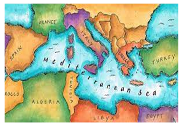 Mediterranean sea (بحیرہ روم) situated among